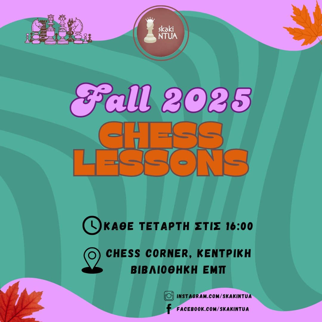 Τα μαθήματα για το χειμερινό εξάμηνο ξεκίνησαν! Κάθε Τετάρτη στις 16.00, στο Chess Corner στην Κεντρική Βιβλιοθήκη!